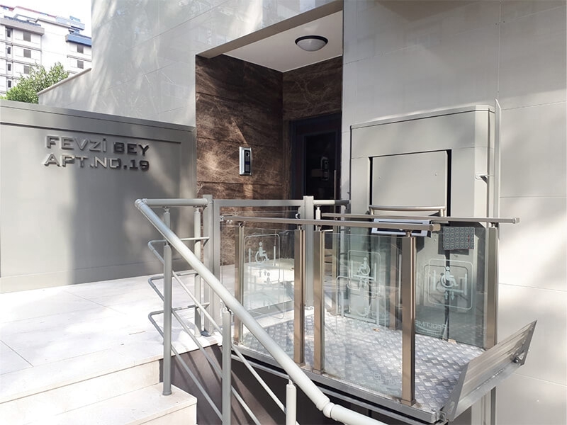| Steuerung | Verriegelte Bedienelemente und Not-Aus-Taster an Böden und Plattform. Weitere Not-Aus-Taster nach Kundenwunsch möglich |